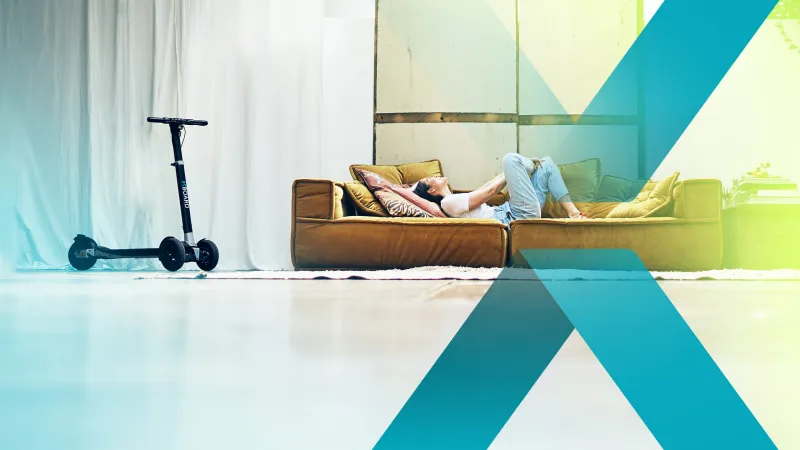 Our XBoard redefines e-scooters. Thanks to its lightweight design and innovative chassis construction from our automotive specialists, our novel city surfboard excels in ease of use and combines comfort and safety to ride with a uniquely relaxed riding experience. Simply unfold it, get on and ride off. Say hello to your scooter buddy! It's always easygoing, can be rolled when it's folded, and is self-supporting when you park it on the train, at the office or while having a coffee.